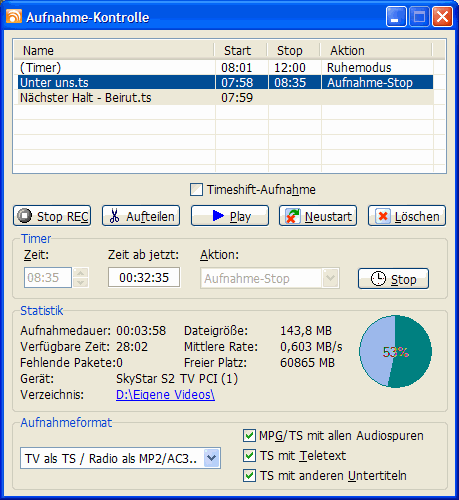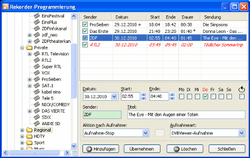 DVBViewer sie als Timeraufnahme einplant.