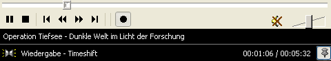 Setzen Sie den Regler in der Kontrollleiste mit einem Mausklick an die gewünschte Stelle, oder ziehen Sie ihn dorthin. Ganz rechts befindet sich die Live-Position. Die Zeitanzeige in der Kontrollleiste informiert Sie über die aktuelle Position und die Gesamtlänge der Aufzeichnung.