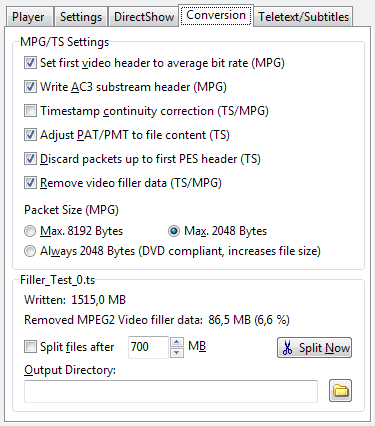 video filler data (TS/MPG): Diese Option betrifft MPEG2 und