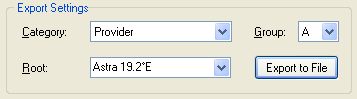 Die Group-Auswahlliste weist exportierten Sendern eine der Sendergruppe A...H zu. Vorgabe ist Gruppe A, außer wenn der für das Scannen verwendeten Transponderliste im Hauptfenster eine andere Gruppe zugewiesen wurde.