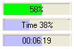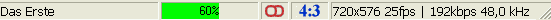 Left-clicking the signal strength field switches to a progress bar, indicating the actual play time in percent and. The next click shows the remaining play time. Correct values are only displayed in case EPG data is available for the transmission.