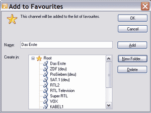 The symbols switch over to the preceding or following station in the favourites list. By using the keyboard, the favourite channels can be selected with [shift key] + [digit key] (if you did not assign other keys to this function).