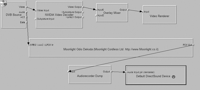 Processing audio and video data streams a long chain of such filters can be involved - each one is responsible for a certain function. The DVBViewer and media-players in general only manage those filters or decoders. They are only indirectly concerned with the processing of the data streams.